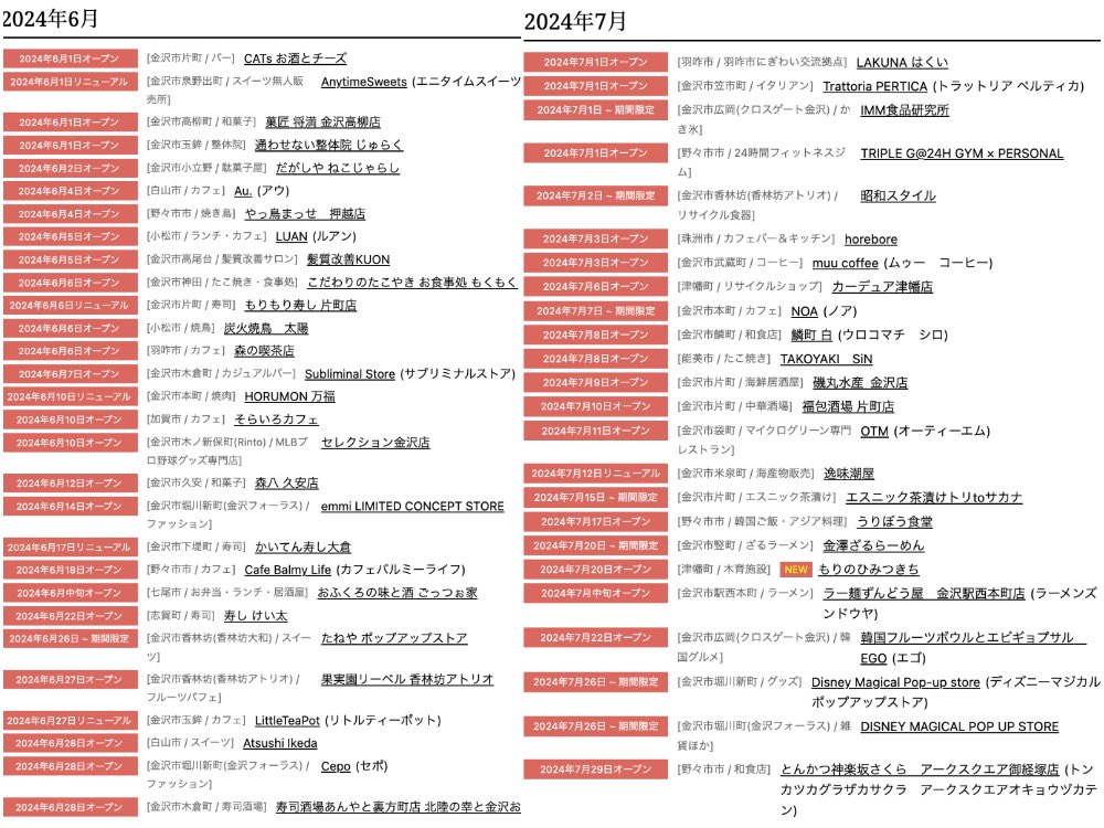 石川県内の新店舗まとめ【2024年6月〜7月】
