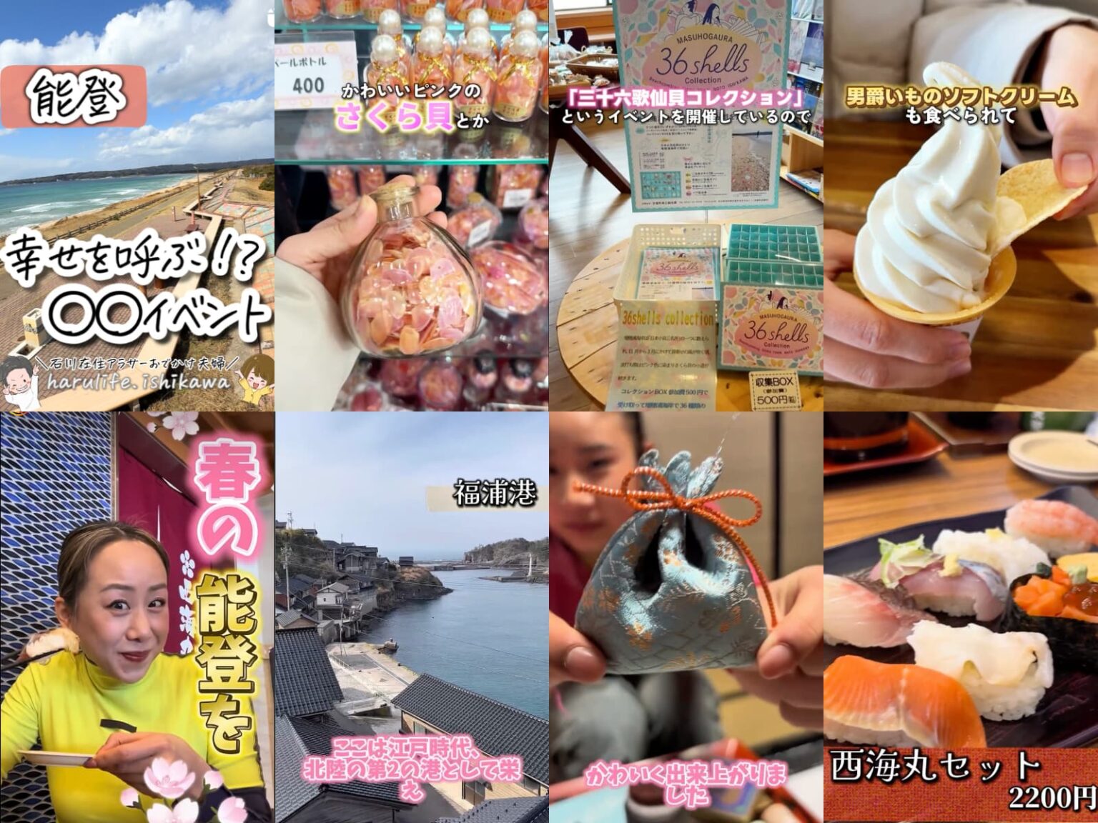 志賀町の隠れた魅力をより広く伝えるため、まず北陸3県に影響力のある『金沢日和』にて体験記事を掲載。さらに、東京・大阪からの新幹線利用による観光客の誘致はすでに実現できていることから、今回は中部エリアに特化した広報を展開しました。その一環として、長野県で人気の紙媒体『長野こまち』およびWebメディア『Web Komachi』にて観光スポットやおすすめショップ(体験)を紹介する記事を掲載。紙とデジタルの両軸で情報発信を行い、多面的なアプローチを図りました。 さらに、北陸エリアで大きな影響力を持つインフルエンサー「こしむらえり」さん、「はる夫婦」さんに現地取材を依頼。体験の様子をリール動画としてSNSで発信することで親しみやすい目線での魅力訴求に繋げました。あわせて、その動画を『金沢日和』のWeb記事にも埋め込み、SNSとWebメディアの相乗効果を狙った展開を実施しました。これらの取り組みにより、福浦港や増穂浦海岸をはじめとする地域資源の魅力が、これまで接点の少なかった中部エリアのユーザーにも届きやすくなり、志賀町の新たなファンづくりのきっかけとなりました。