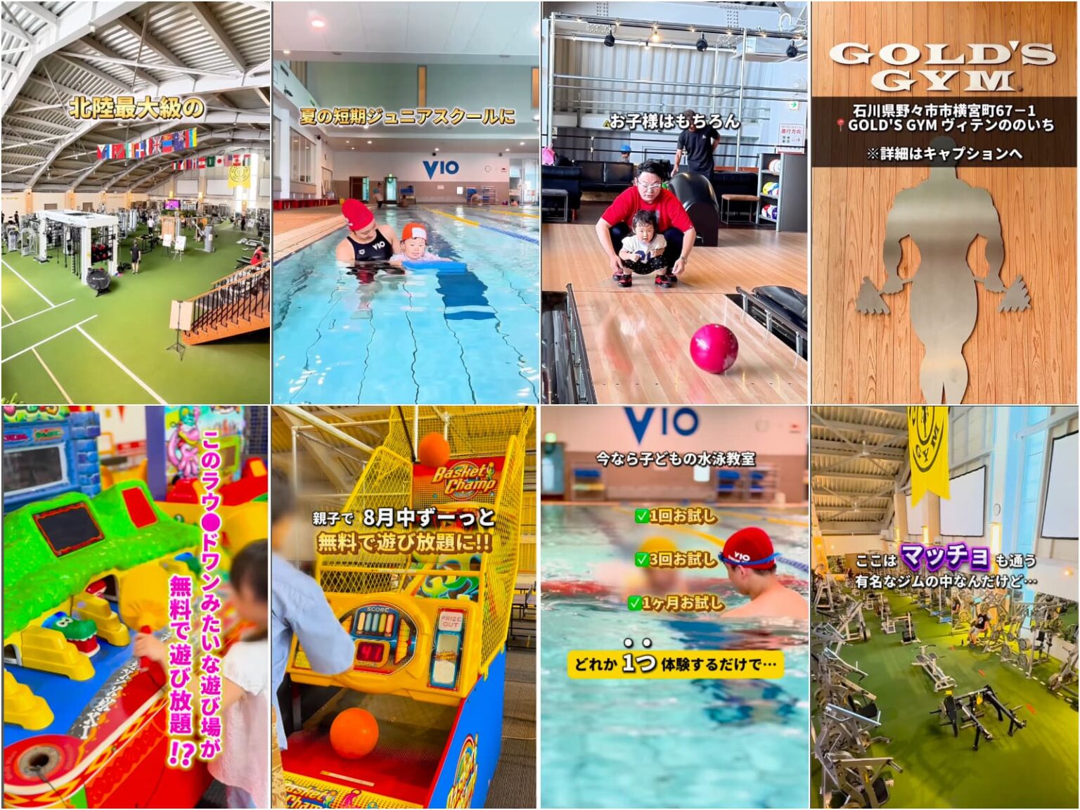 「遊べるジム」という多彩な魅力を伝えるため、子連れファミリー層に人気のインフルエンサー「しーぱぱ」さん、「みずきこ」さんを起用。スイミング体験の楽しさや、ボウリング・ローラースケート・足湯などが揃うスポーツレジャーゾーンの充実ぶりをリール動画でわかりやすく紹介しました。特に、「体験参加で夏休み中は施設が親子で使い放題」というコストパフォーマンスの高さに注目が集まり、動画への高い反応とシェアを獲得。施設のユニークさと親しみやすさが伝わり、新規ファミリー層の関心を効果的に引き上げるプロモーションとなりました。