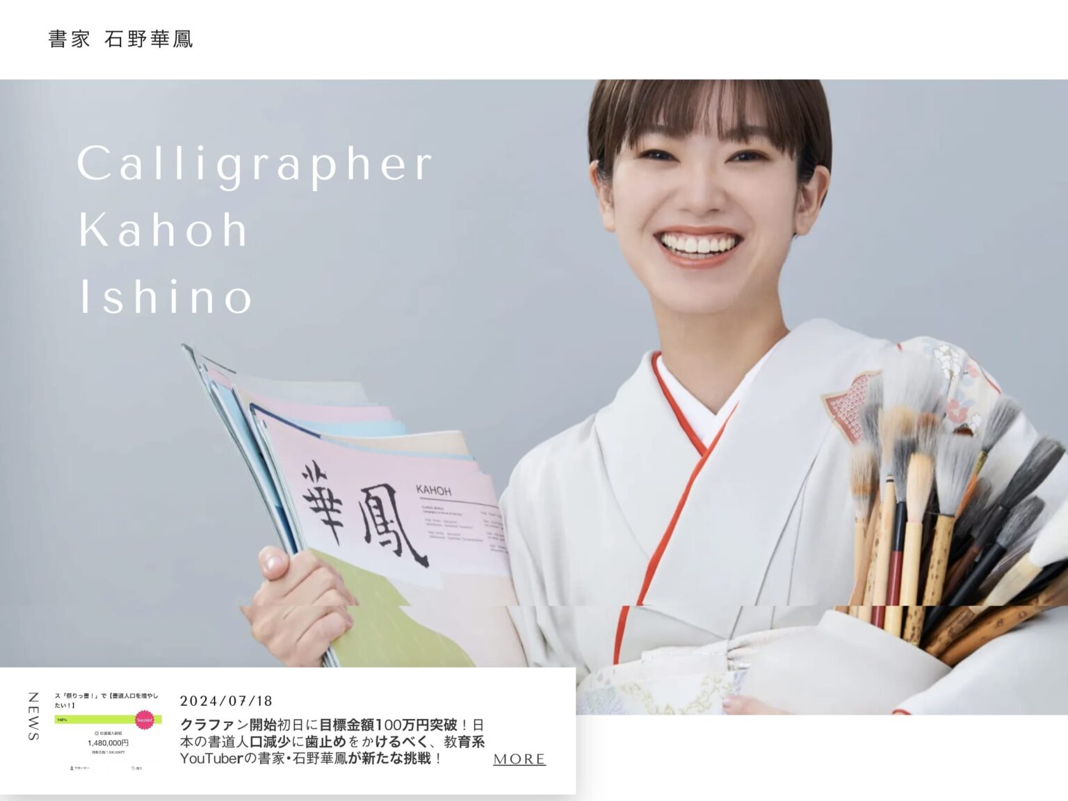 『株式会社書道オフィス華』様は「書道で人生を豊かに。」をテーマに、書道のDXを推進する会社。書家・石野華鳳(いしのかほう)さんのマネジメントや、日本初!アプリで本格書道が学べる「私の書道学校」の運営、書家石野華鳳がプロデュースする書道用具・グッズ等を販売するオンラインショップの運営、書道雑誌「華鳳」の企画・制作・運営、YouTubeチャンネル運営などを手掛けられています。2024年9月『金沢21世紀美術館』にて書道フェス「祭りっ書!」を開催するにあたり、石野華鳳さんの軌跡をきちんと紹介するサイトを作成したいと当社にお声掛けいただきました。