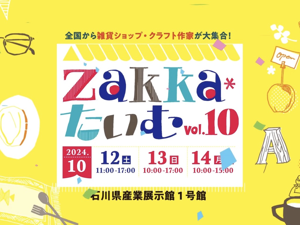 全国各地から雑貨ショップ・クラフト作家が大集合する「Zakka*たいむ」。ガーデン雑貨や食器類、アクセサリーや革製品、布小物、子供服など、雑貨好きにはたまらないアイテムがズラリと並ぶ、大人気のイベントです。今回はvol.10として10月12日(土)〜14日(月・祝)の3連休に開催。県内のみならず、富山県・福井県といった隣県からの集客も期待されておりました。