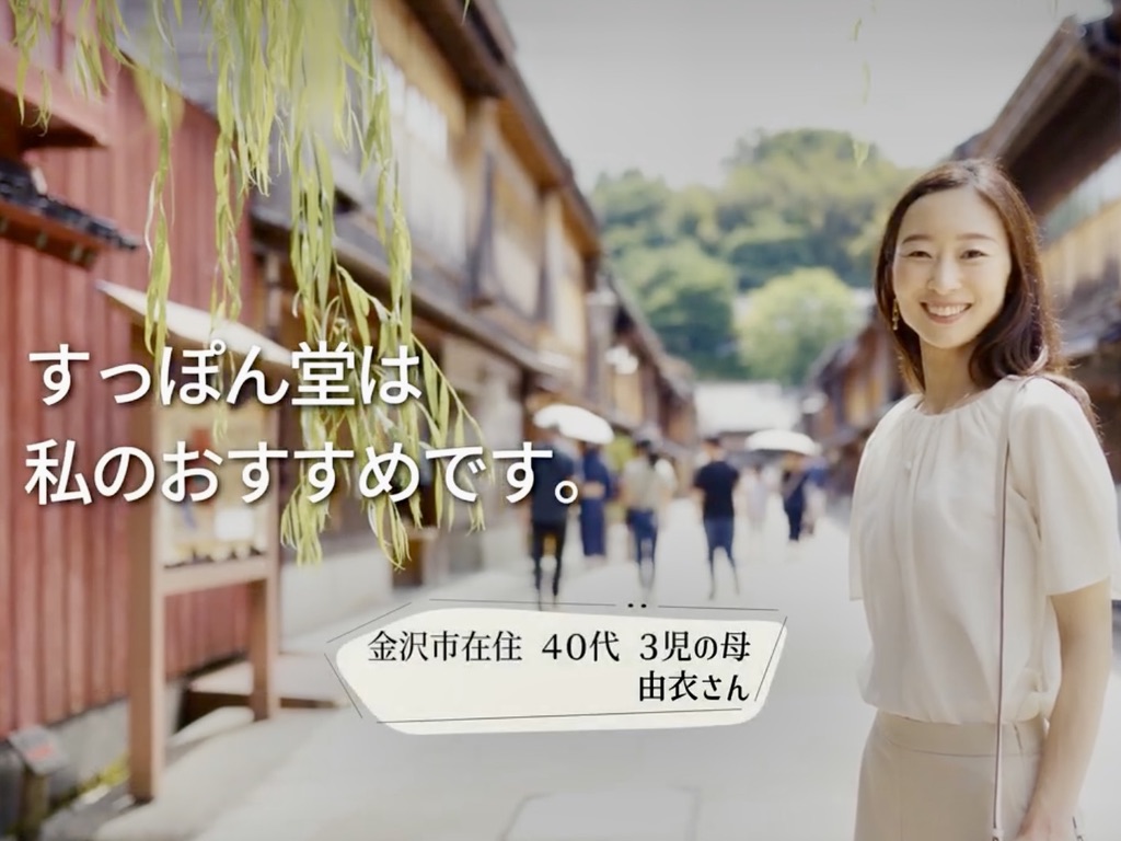 動画を撮影するにあたり、モデル選びから始めました。清潔感があり美意識の高い女性モデルを起用することで、従来のすっぽんサプリのイメージを刷新し、女性視聴者との共感性を重視した内容を目指しました。撮影はカメラマンと「女性」「本物」「美しさ」など着地イメージを共有。古都金沢・東山エリアの店舗をお借りして実施し、伝統と品格を訴求。上質を好み、健康的な暮らしを送る女性のライフシーンのそばに、すっぽん商品があることを表現しました。従来の男性や高齢の顧客にも受け入れられつつ、ブランドイメージに広がりを持たせるという目的を達成。店頭で放映している動画に足を止める人が大勢いると報告をいただいています。