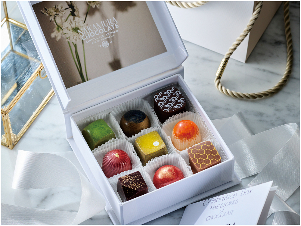オーストラリア・パースで活躍中の日本人ショコラティエ中村有希氏が手掛ける『Nakamura Chocolate(ナカムラチョコレート)』。素材を掛け合わせた繊細な味わいが魅力のボンボンショコラは、デザインも大胆かつ斬新です。「Life is a celebration(人生とは祝福)」と名付けられたセレブレーションBOXには、艷やかな9つのチョコレートが並びます。2025年の新作は、キャラメル味のゴールデンサンライズとフルーティーな酸味が魅力のルビーサンセット。専用手提げ付きでワンランク上の贈り物にも最適です。
