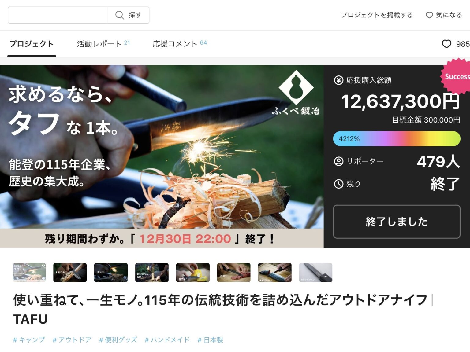 商品価値を最大限に表現するため、Makuakeでのページ制作の他、パッケージデザインやSNS広告などマーケティング施策を総合的に承りました。記事では、実際の利用をイメージしやすいように切るシーンや着火シーンを盛り込み、臨場感を大切にした写真に。物語性を重視し、読み物のように仕上げました。TAFUの目的と価値観に寄り添い、商品のメッセージ性を巧みに伝えることを重視。それにより、応援購入総額12,637,300円という大きな成果を達成しました。