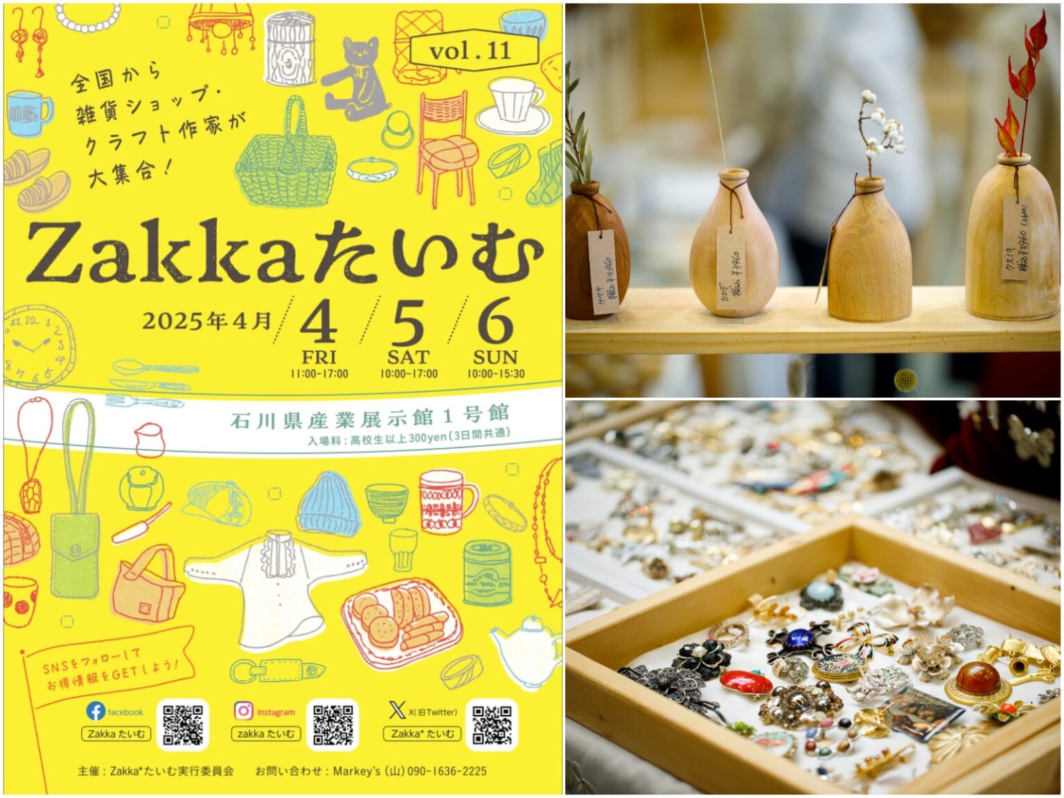 全国から雑貨&クラフトが大集合! 北は青森、南は佐賀・宮崎まで、日本各地の雑貨ショップやクラフト作家が集う「Zakka*たいむ vol.11」が、4月4日(金)~6日(日)の3日間、石川県産業展示館1号館にて開催。ガーデン雑貨、食器類、アクセサリー、革製品、布小物、子供服など、雑貨好きにはたまらない見ごたえのあるアイテムが勢揃いします。11回目として県内では定番化してきましたが、富山県・福井県といった隣県からの新しい顧客層の開拓を期待されておりました。