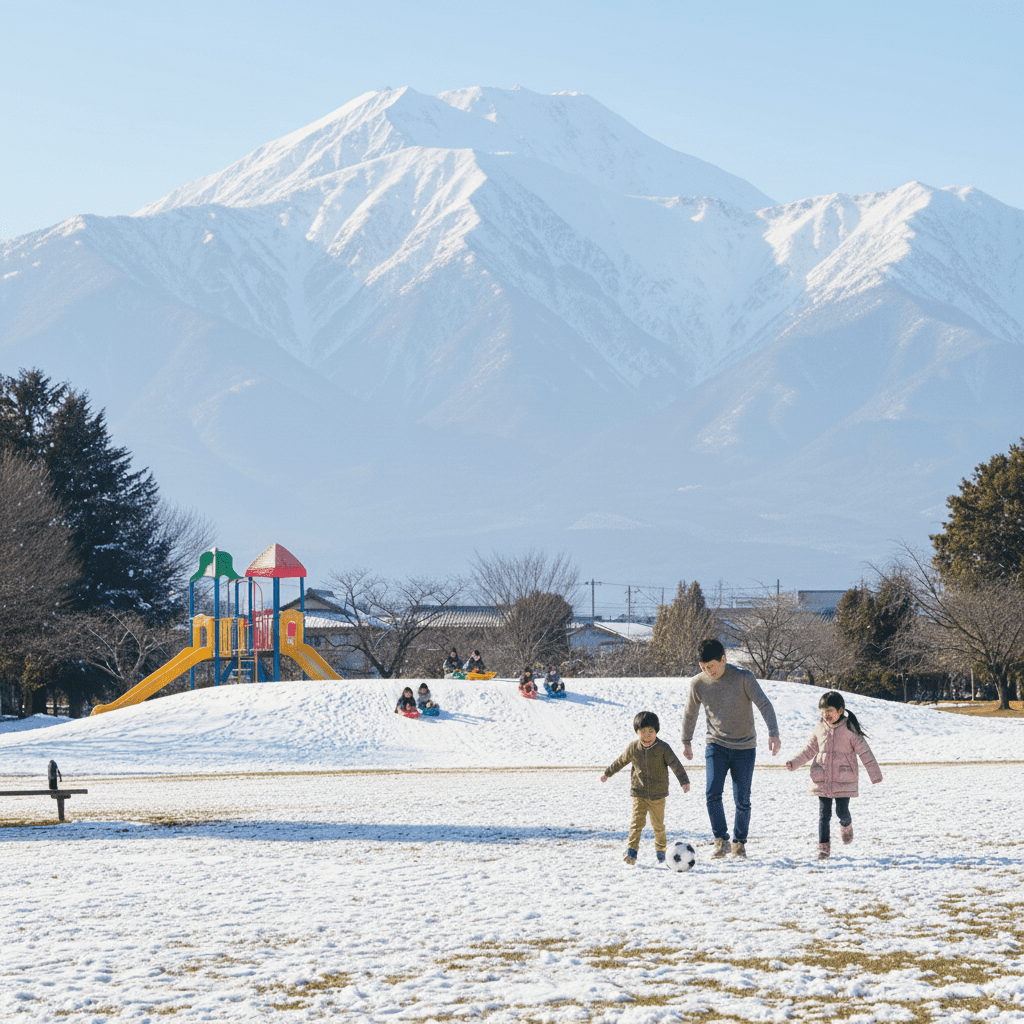 広場ではボールを持っていけばサッカーを楽しめます。学校帰りや休日に遊ぶのにぴったりです。冬になると坂道が雪で白くなり、ソリ遊びができるのも特別な体験です。