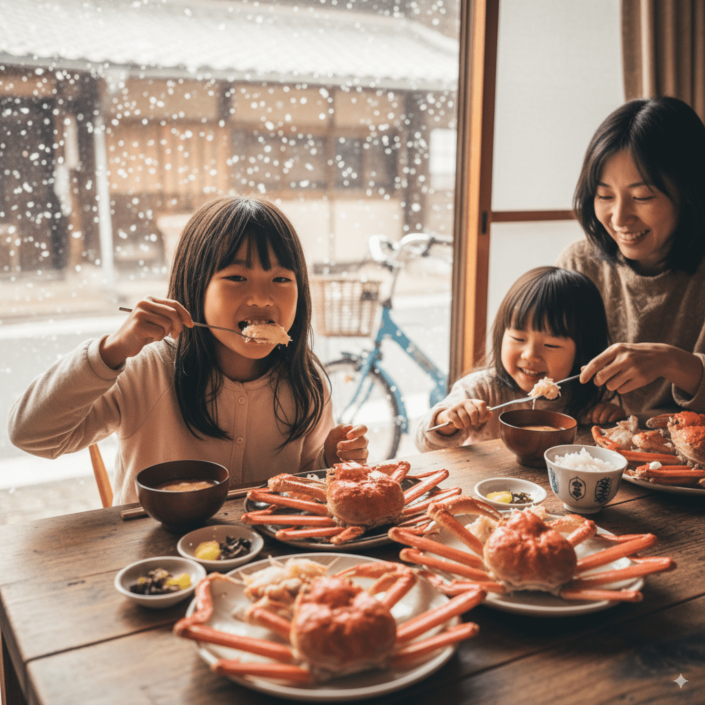 おでかけが難しい日でも、家族でかにを囲めば楽しい時間になります。