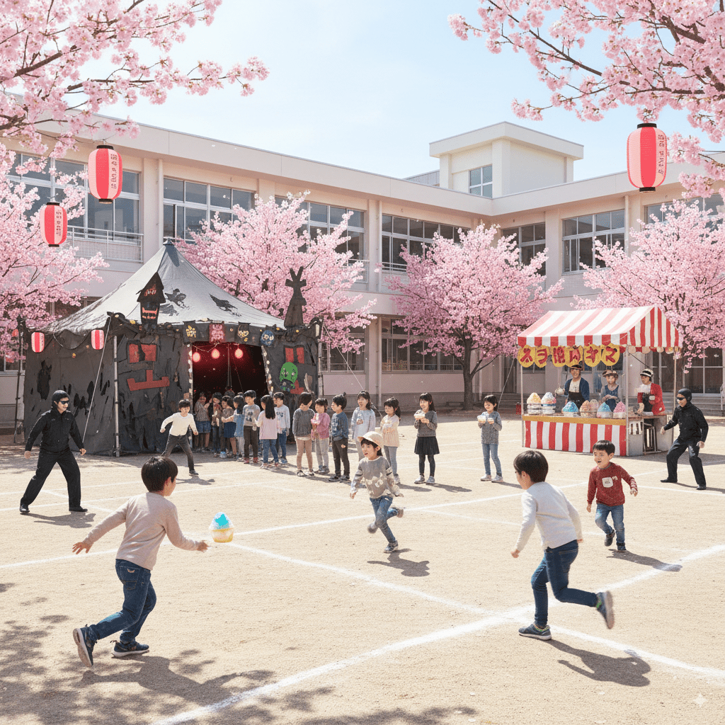 金沢の木曳野小学校では、春になるととても楽しいイベントが開かれます。校庭や広場が特別な遊び場に変わり、子どもたちに大人気です。