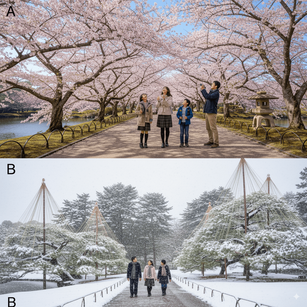 春の桜と冬の雪つり!家族で楽しむ金沢・兼六園