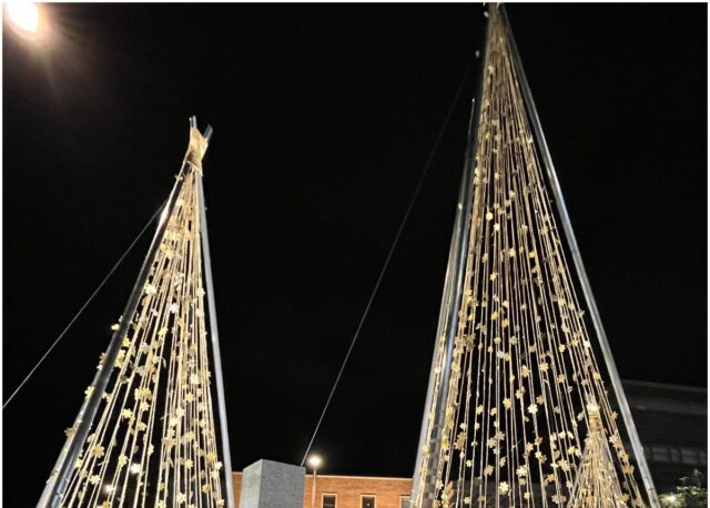 近江町市場の周辺エリアでは、金沢の冬支度・雪吊りに伝統工芸品の金箔をあしらい、LEDの光で彩りを添えた金箔づくしのモニュメント「金箔きらら」が登場!