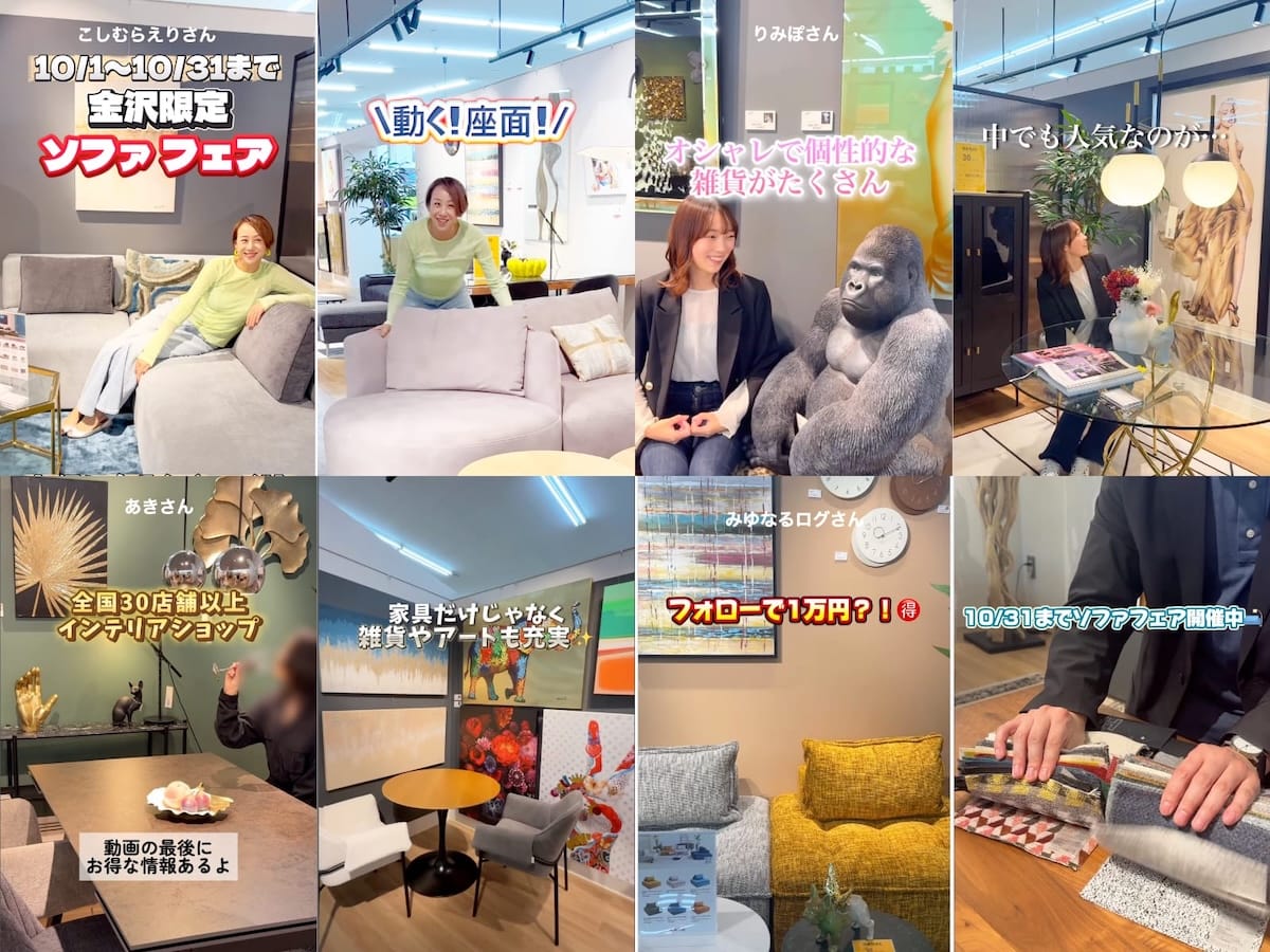 「リビングハウス金沢店」様は、大阪・東京を中心に全国30店舗以上を展開するインテリアショップ「LIVING HOUSE.」の北陸初出店店舗。遊び心とデザイン性を兼ね備えた人気ブランド「KARE」など、テレビやCMのセットに使われるセンスのよい家具・雑貨を多数取り揃えています。 しかし、店舗が寝具専門店「ふとんタナカ」内にあるため、ターゲットとしている20代〜30代の若い世代にその魅力が届きにくいという課題がありました。こうした背景から、センスのよい商品群をより多くの人に知ってもらい、顧客層を広げたいという思いで、地元のインフルエンサーを活用したプロモーションを希望されました。