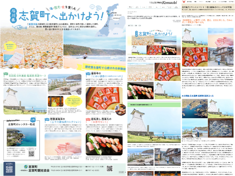 志賀町の隠れた魅力をより広く伝えるため、まず北陸3県に影響力のある『金沢日和』にて体験記事を掲載。さらに、東京・大阪からの新幹線利用による観光客の誘致はすでに実現できていることから、今回は中部エリアに特化した広報を展開しました。その一環として、長野県で人気の紙媒体『長野こまち』およびWebメディア『Web Komachi』にて観光スポットやおすすめショップ(体験)を紹介する記事を掲載。紙とデジタルの両軸で情報発信を行い、多面的なアプローチを図りました。 さらに、北陸エリアで大きな影響力を持つインフルエンサー「こしむらえり」さん、「はる夫婦」さんに現地取材を依頼。体験の様子をリール動画としてSNSで発信することで親しみやすい目線での魅力訴求に繋げました。あわせて、その動画を『金沢日和』のWeb記事にも埋め込み、SNSとWebメディアの相乗効果を狙った展開を実施しました。これらの取り組みにより、福浦港や増穂浦海岸をはじめとする地域資源の魅力が、これまで接点の少なかった中部エリアのユーザーにも届きやすくなり、志賀町の新たなファンづくりのきっかけとなりました。