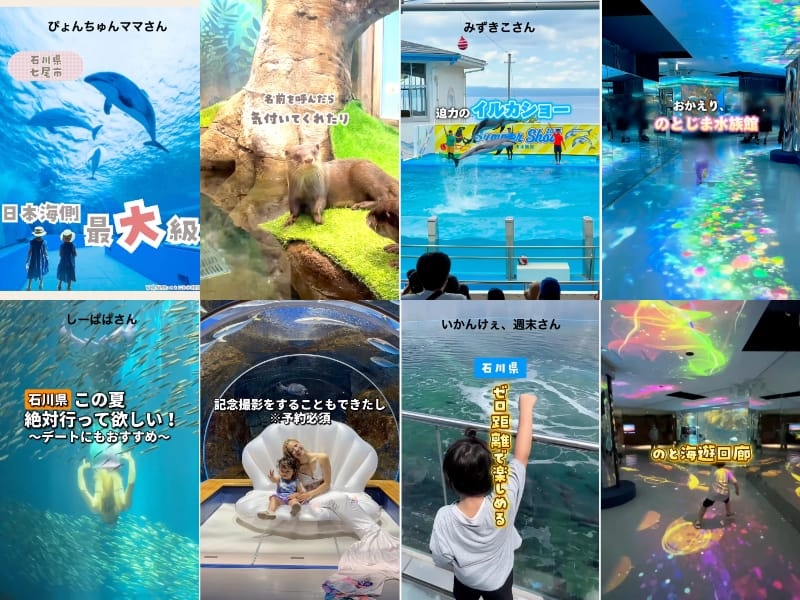 石川県内の子育て系インフルエンサーを厳選。特に未就学児を育てておられるご家族に響くよう、実際に石川県内で子育てをしているパパ・ママインフルエンサーさんに依頼しました。彼らには、親子でのとじま水族館を訪れてもらい、実体験を元に、子どもの反応や親目線での感想を交えた投稿を制作していただきました。動画や写真を活用し、リアルで親しみやすい内容に仕上げることで、より多くの共感と反響を得ることができました。インフルエンサーによる投稿は非常に大きな反響を呼び、のとじま水族館には多くのファミリー層が来場。投稿を通じてのとじま水族館のInstagram公式アカウントのフォロワー数も増加し、継続的な情報発信の基盤づくりにもつながりました。