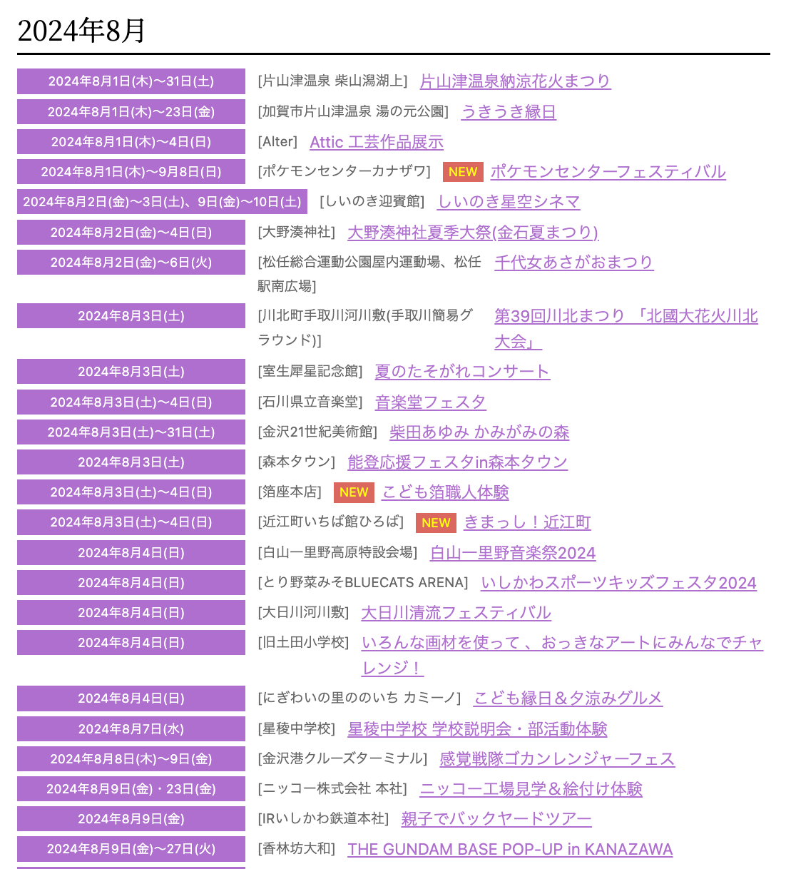 いよいよ夏休みがスタートしましたね。家族や友人、カップルで足を運びたい8月〜期間中の石川県のイベントをまとめました。花火情報も追加しています。NEW! は新たなイベントなので、要チェックですよ!