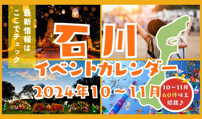 金沢や石川での観光とおでかけを楽しむなら、金沢日和のこのガイド!人気のイベントやスポット、グルメ、季節ごとの楽しみ方をまとめました。北陸の文化と自然を堪能するためのおすすめ情報はチェックしてくださいね。2024年10月〜開催される石川県内のイベントです。