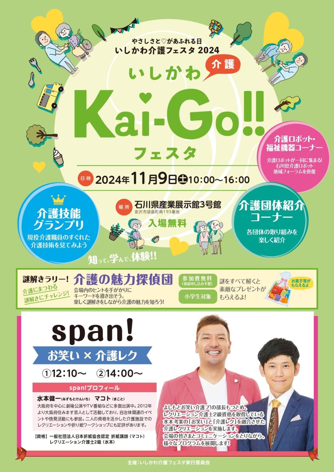 「これから必要なことだとわかっているけれど、介護ってなんだか大変そう…」。そんな風に足踏みしてしまう方に朗報。会場全体が笑いと学びに包まれるイベント『いしかわ介護フェスタ 2024』が石川県産業展示館3号館にて開催される。