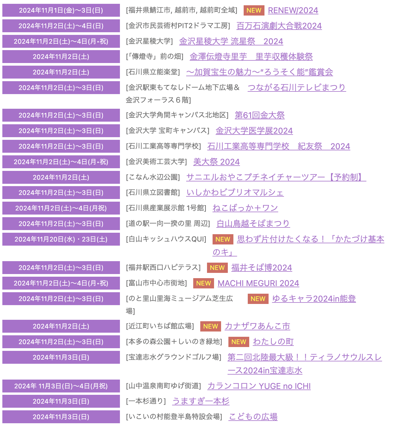 2024年石川県11月のイベント