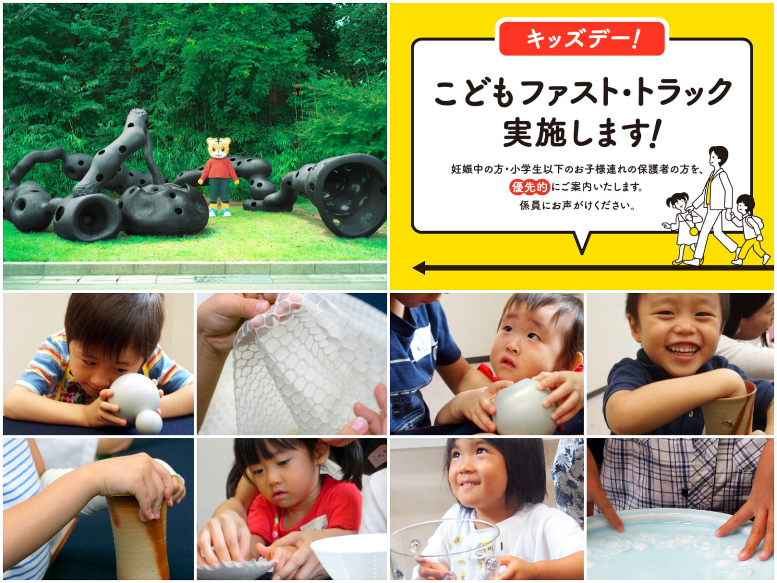 「こどもファスト・トラック」とは妊婦の方や小学生以下の子供連れの保護者を対象に優先入館を案内してくれるサービス。「しまじろう」が観察した作品を触ったり、巨大な作品を探検したり、たくさんの「わお!」な体験を楽しめる「こどもタッチ&トーク しまじろうがみた・さわったアレやコレ」も同日に楽しめる。