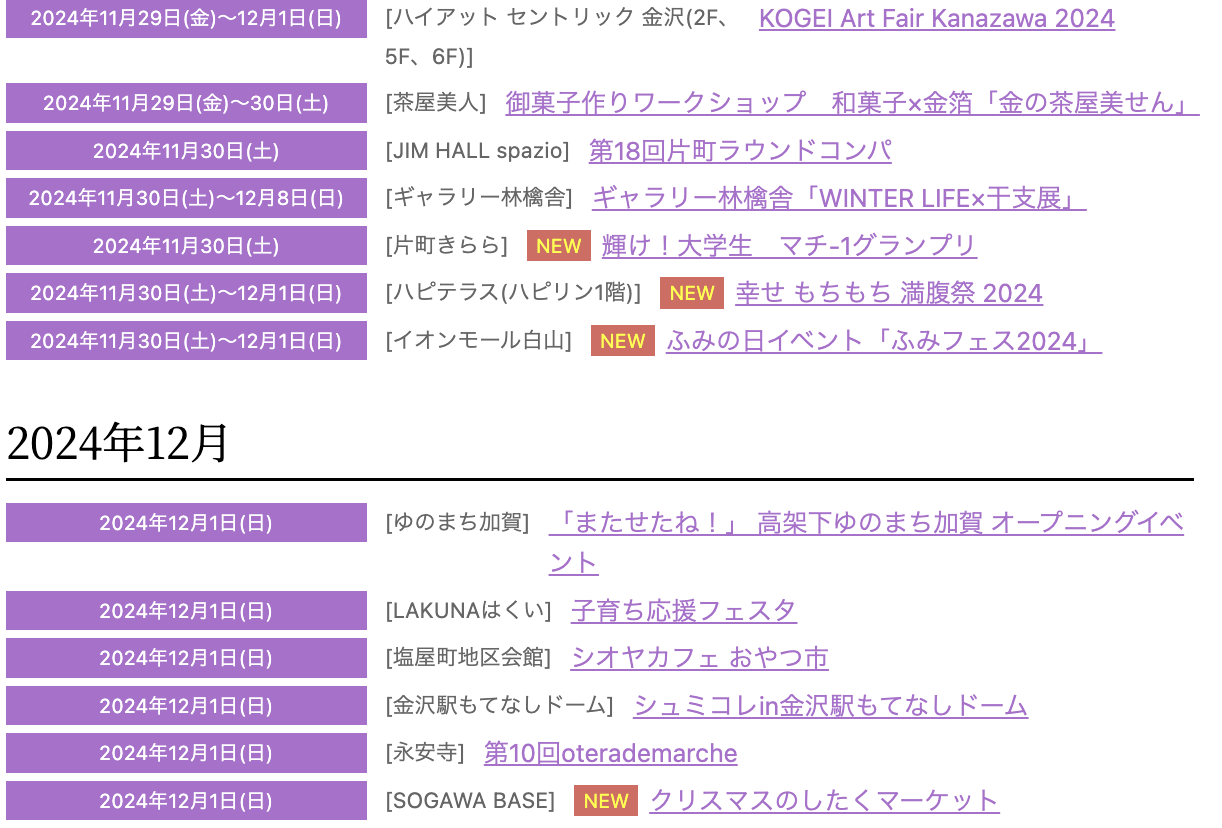 2024年11月〜12月に開催される石川県内の人気のイベントやスポット、グルメ、季節ごとの楽しみ方をまとめました。北陸の文化と自然を堪能するためのおすすめ情報はチェックしてくださいね。