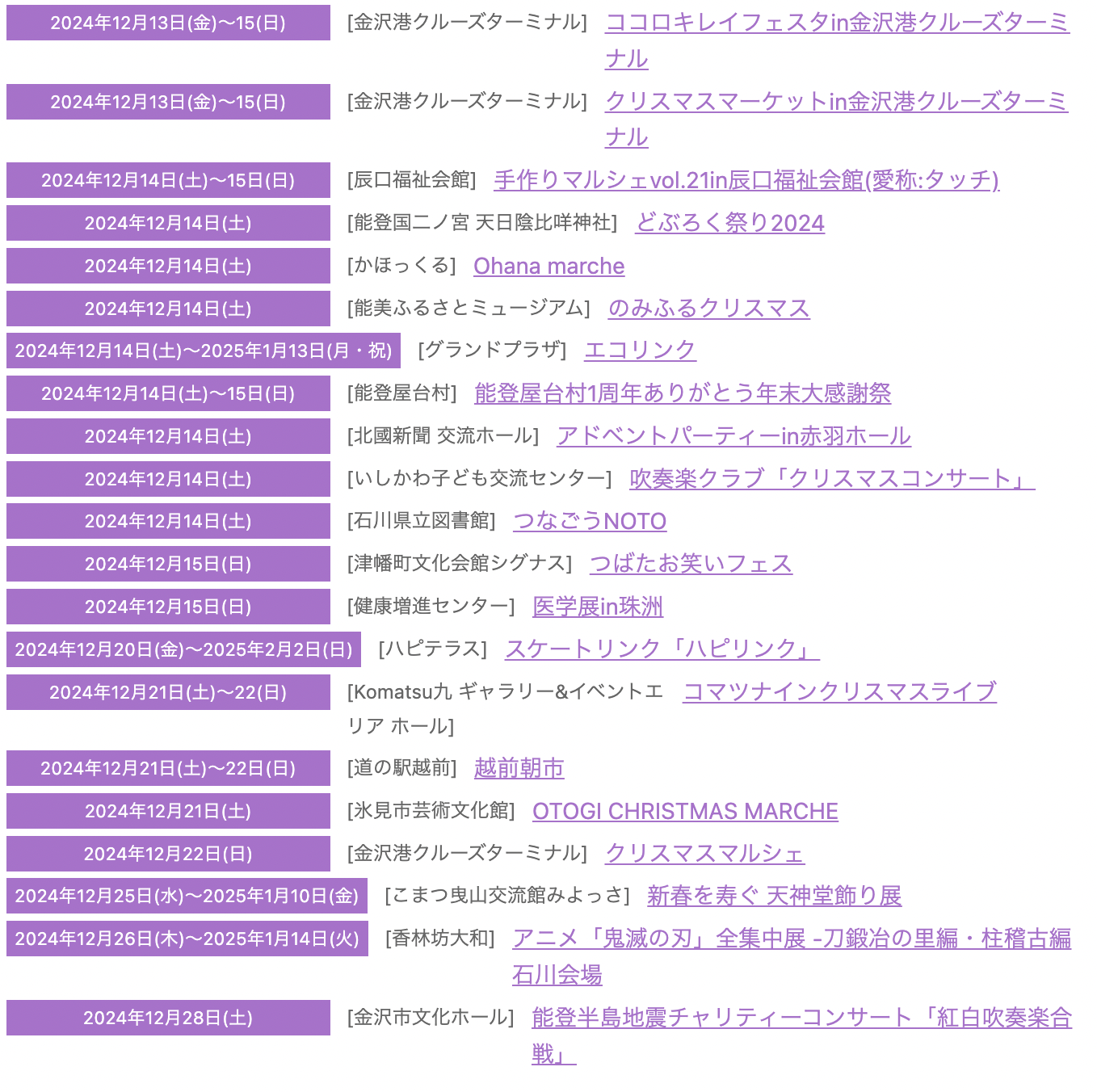 2024年12月に開催される石川県内の人気のイベントやスポット、グルメ、季節ごとの楽しみ方をまとめました。北陸の文化と自然を堪能するためのおすすめ情報はチェックしてくださいね。