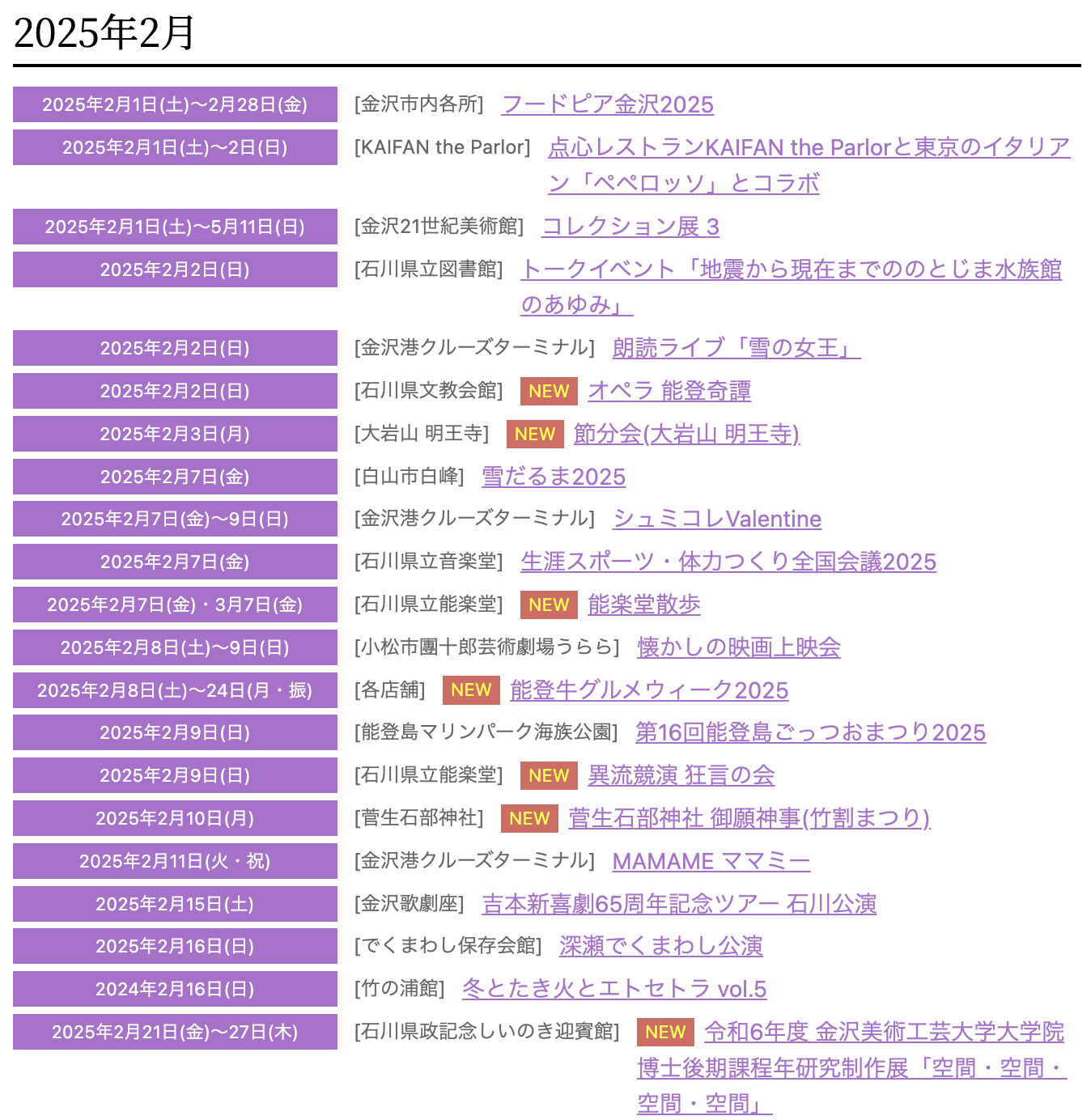 金沢や石川での観光とおでかけを楽しむなら、金沢日和のこのガイド!人気のイベントやスポット、グルメ、季節ごとの楽しみ方をまとめました。北陸の文化と自然を堪能するためのおすすめ情報はチェックしてくださいね。2025年1月に開催される石川県内のイベントです。