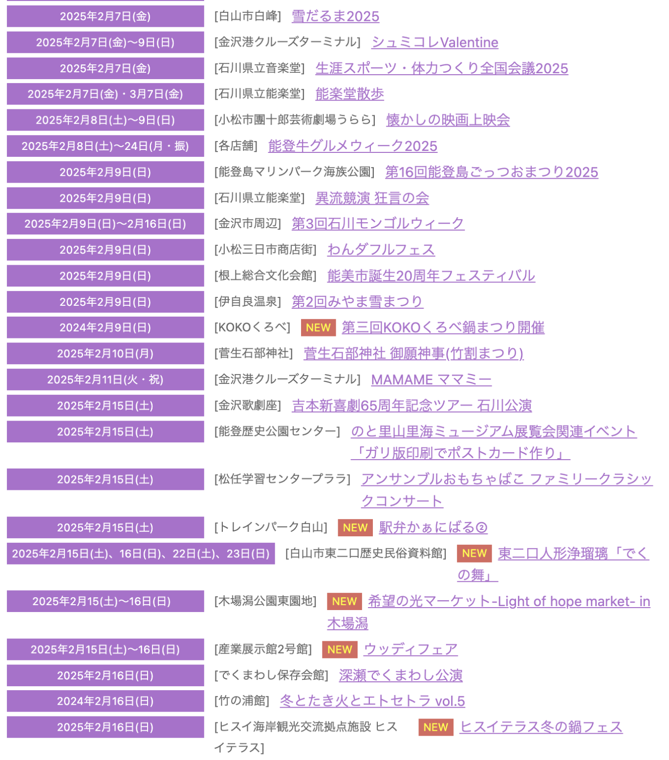金沢や石川での観光とおでかけを楽しむなら、金沢日和のこのガイド!人気のイベントやスポット、グルメ、季節ごとの楽しみ方をまとめました。北陸の文化と自然を堪能するためのおすすめ情報はチェックしてくださいね。2025年2月に開催される石川県内のイベントです。