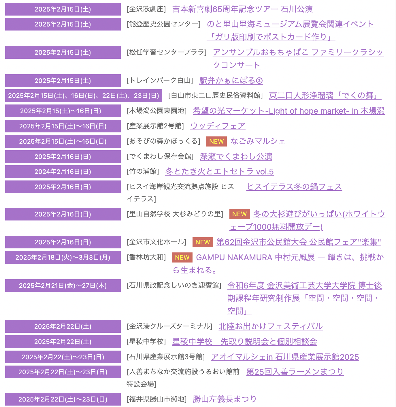 金沢や石川での観光とおでかけを楽しむなら、金沢日和のこのガイド!人気のイベントやスポット、グルメ、季節ごとの楽しみ方をまとめました。北陸の文化と自然を堪能するためのおすすめ情報はチェックしてくださいね。2025年2月に開催される石川県内のイベントです。