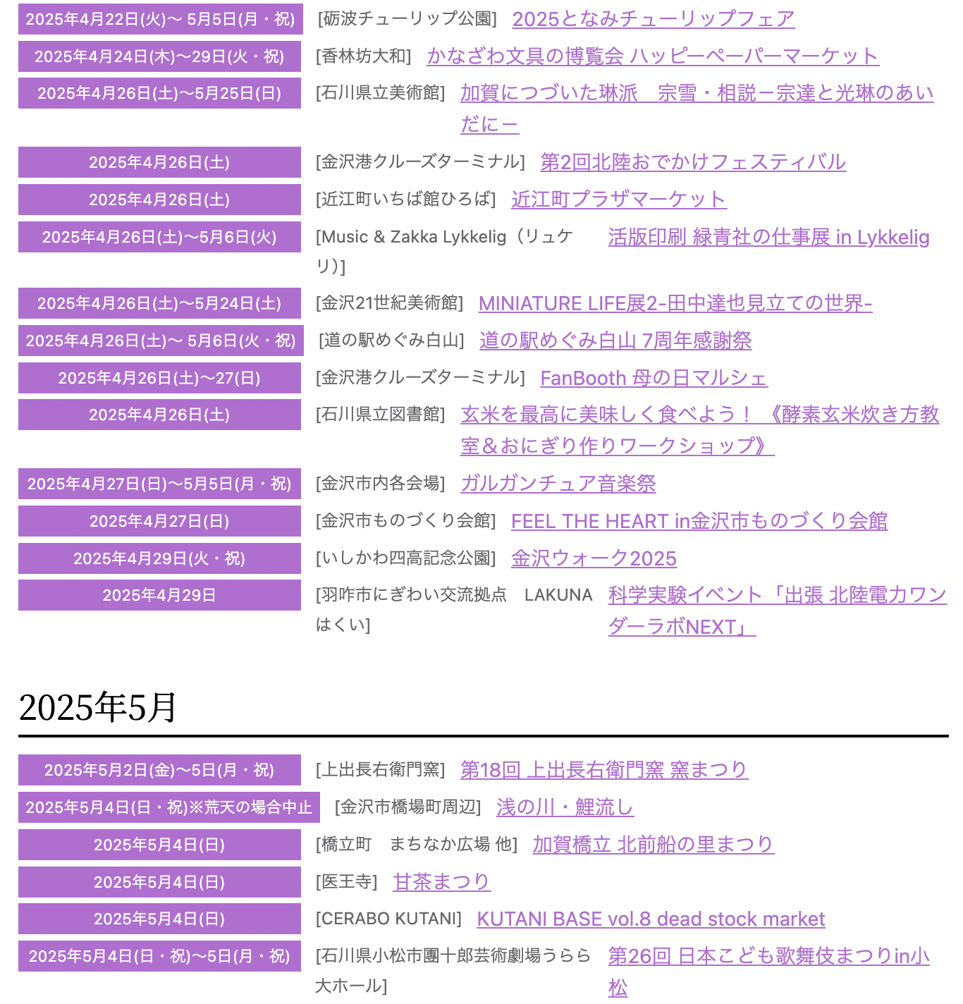 【石川・金沢】2025年4月のイベント