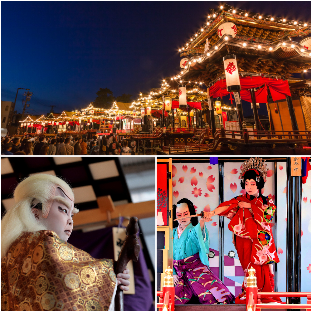 クライマックスはなんといっても、それぞれの個性的なデザインが施された曳山が一堂に会する「曳山曳揃え」。ライトラップされた曳山が黄金色に輝く瞬間は、必見です♪