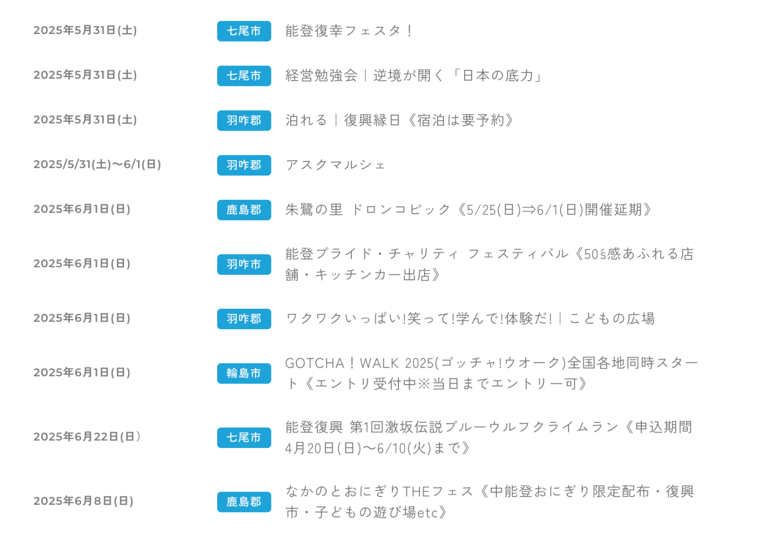 【5/30】2025年能登エリアのイベント・スポット情報まとめ
