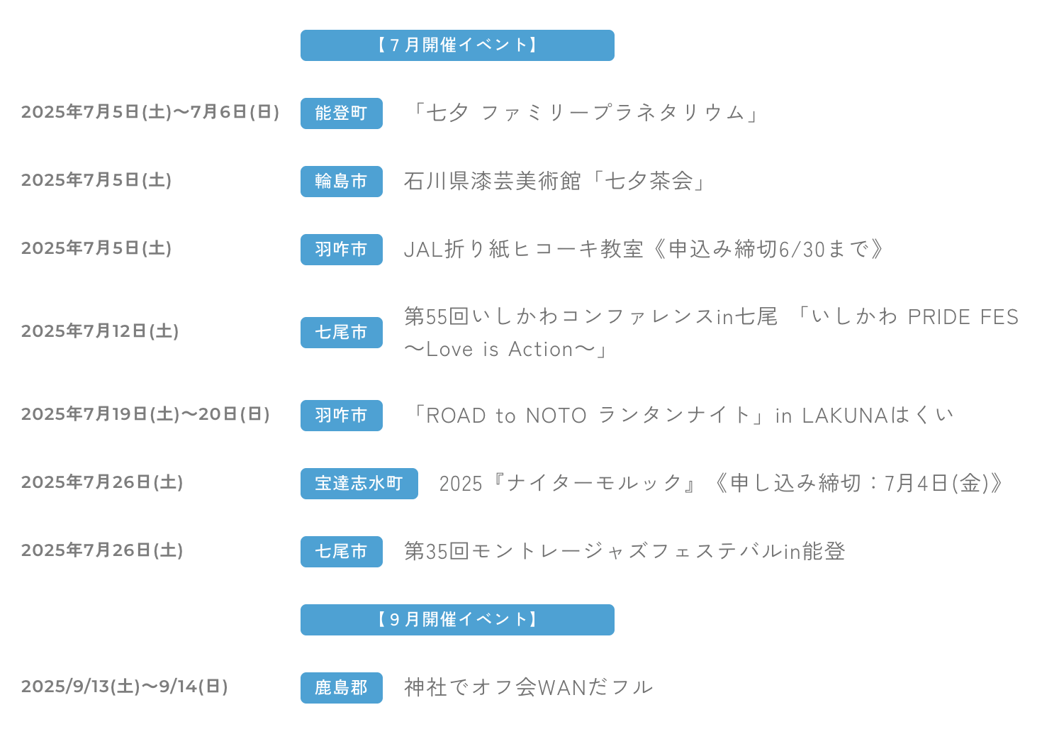 【6/30】2025年能登エリアのイベント・スポット情報まとめ