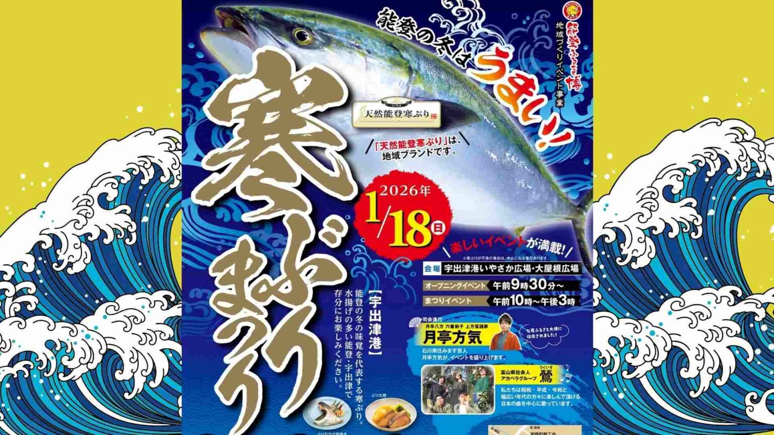 冬の能登といえば、やはり「寒ぶり」。荒波で引き締まり、脂がたっぷり乗ったその味は、まさに“冬の味覚の王様”です。そんな旬の美味しさを存分に楽しめるイベント「のと寒ぶりまつり2026」が、寒ぶりの水揚げで知られる能登町・宇出津(うしつ)港で開催されます。