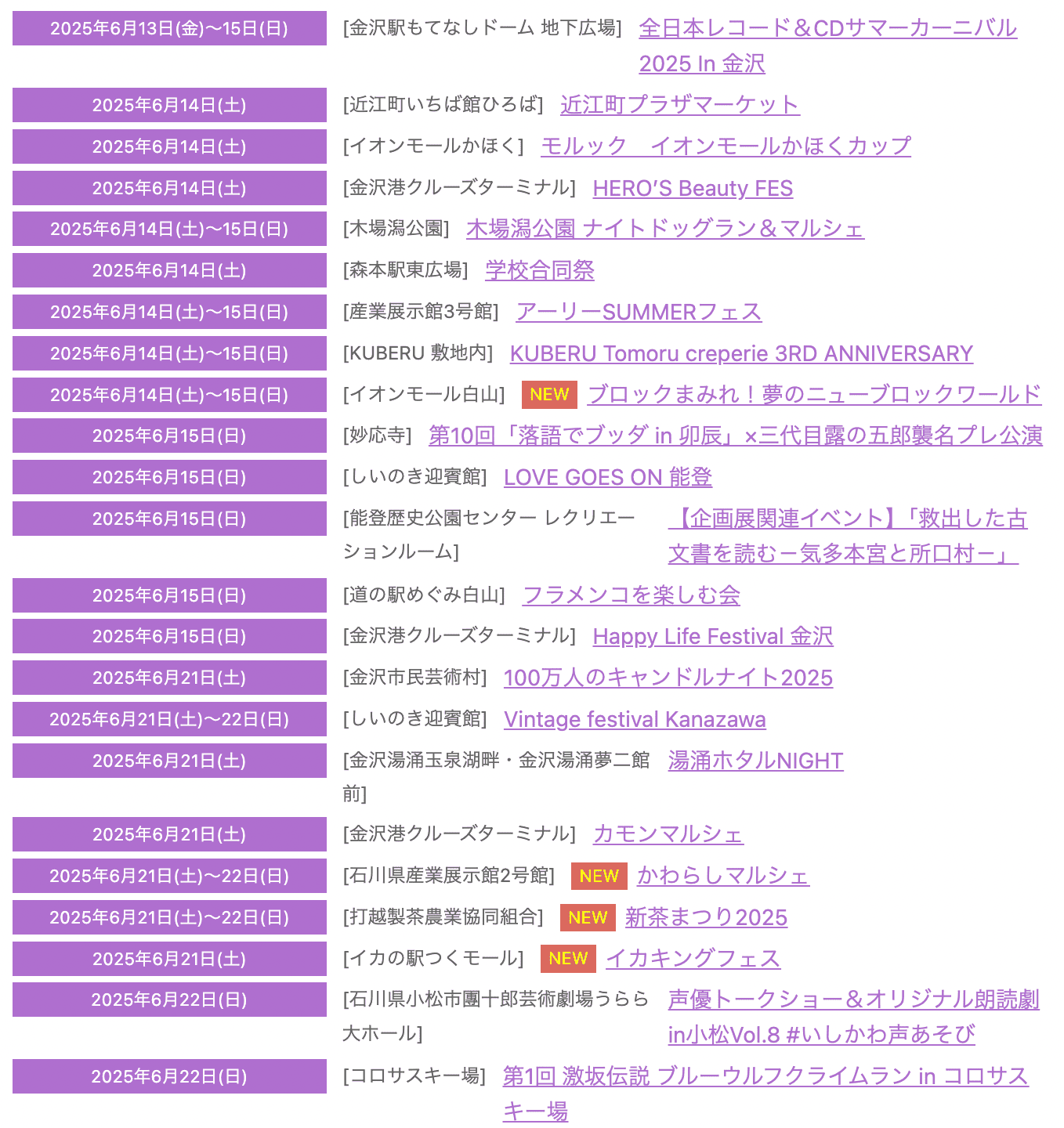 金沢や能登、加賀エリアで2025年6月に開催される石川県内の人気のイベントやお祭りの情報をまとめました。北陸の文化と自然を堪能するためのおすすめ情報満載ですので、お出かけ前にチェックしてくださいね。