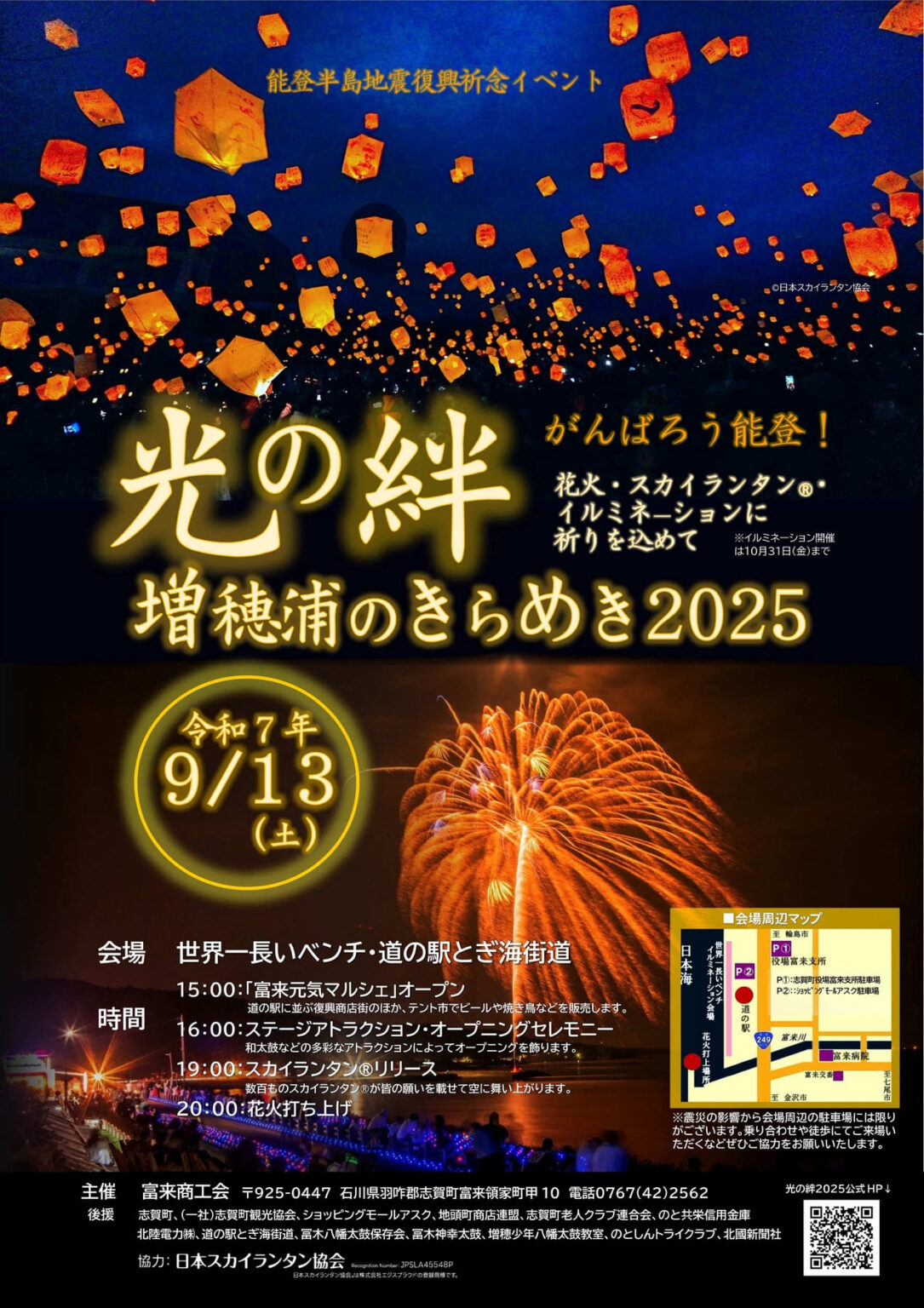 【能登半島地震復興祈念】花火・スカイランタン®・イルミネーション。志賀町で過ごす特別な夜。【9/13(土)】