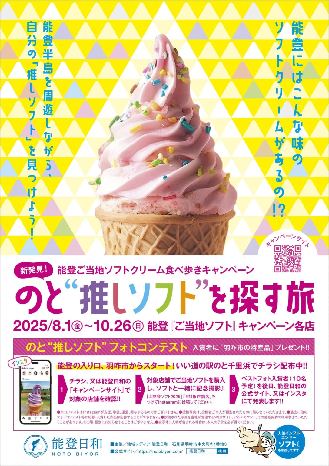 「能登半島を楽しんで周遊したい」という方にぴったりのイベント、「新発見!のと“推しソフト”を探す旅」が、能登日和主催にて開催される。能登地域の知られざる名品ソフトクリームを味わいながら、羽咋市から奥能登へ、能登半島を巡る旅を楽しめる。特別アンバサダーには、人気インフルエンサー「ソフトくん」が就任。