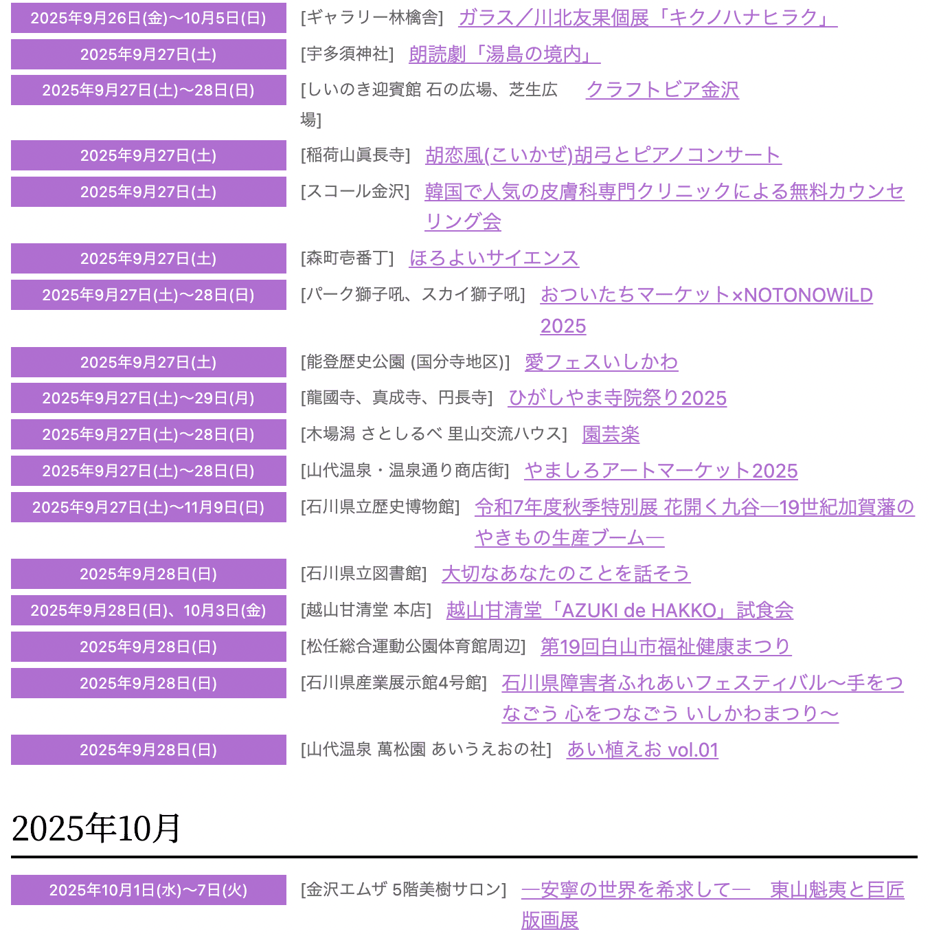 2025年石川県9月のイベント