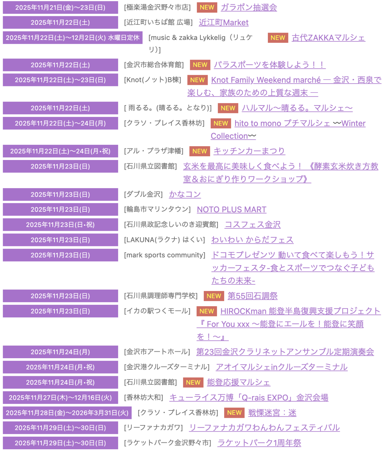 2025年石川県11月のイベント