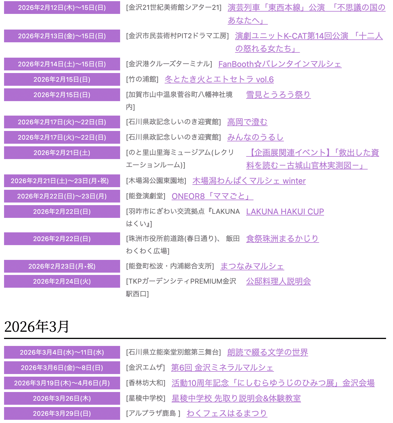 2026年石川県2月のイベント
