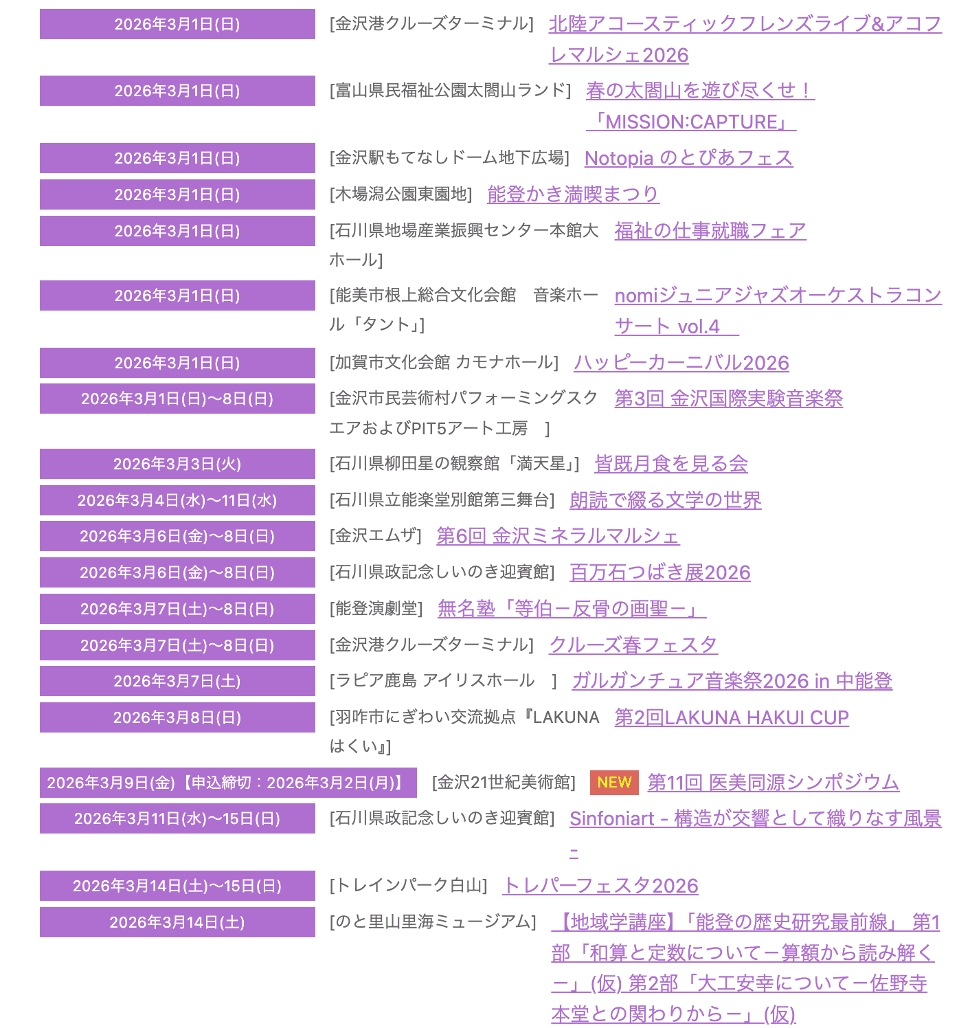 2026年石川県3月のイベント