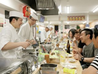 笑顔と活気があふれる、大人気の串揚げ酒場。