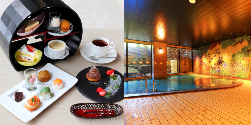 ■左/アフタヌーンティー■右/男子大浴場/※写真はイメージです■『満天ノ 辻のや』のランチ特集詳細はこちら