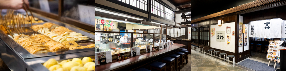 熱々のおでんは沖縄から北海道まで日本全国で食べられており、通常は冬の食べ物。しかし、金沢は夏でもおでんが当たり前で、通年営業の老舗おでん専門店が市内に点在。地元に根強く愛されている。さらに近年のメディア紹介やSNS発信の影響もあって、今ではどこのおでん屋の前にも通年、長い行列ができている。ここ黒百合は金沢駅構内に位置する好立地。11時の開店と同時に席が埋まるほどの人気店。おでんダネの種類はすこぶる豊富で、里芋やふきの野菜類、ふかしやごぼ天の練り物、バイ貝やつみれの魚介類など食べ飽きしないように、およそ30種は揃えている。