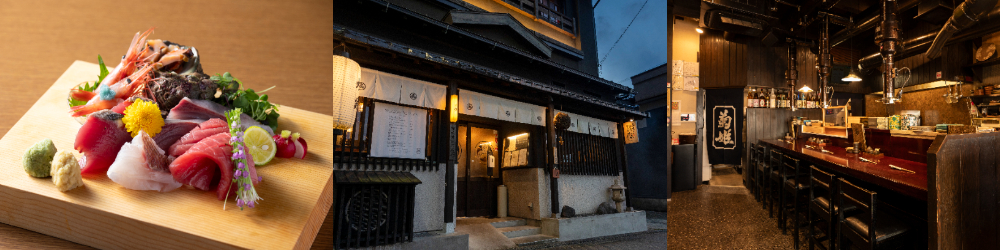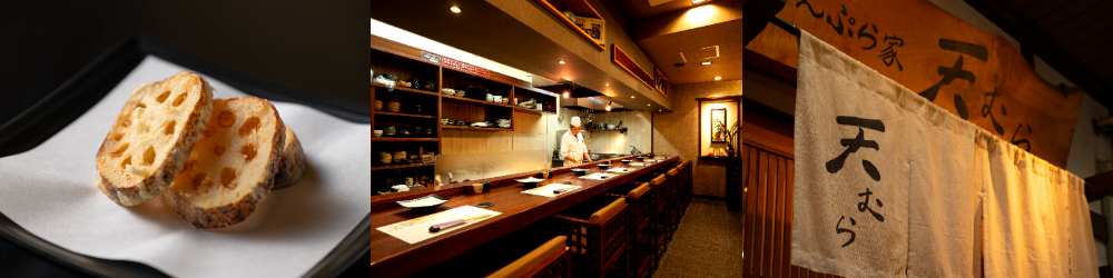 金沢では数少ない天ぷら専門店で、県内外に根強いひいきを抱える。主人は毎朝、市場へ出向き、季節の魚介や野菜を吟味。特に、金沢の加賀れんこんや熊本の赤ナスなど、野菜には並々ならない思いがあり、「揚げることで、うま味や食感をもっと引き出したい」を探求。生産農家へも足を運び、「この野菜をお宅で作ってもらえないか」といったリクエストをすることも。天ぷらは、素材によって衣の配合や揚げ温度を変えることはもちろん、客の箸の進み具合に合わせて一つずつ揚げていく。客に目が行き届くように、と席はカウンターのみ、鍋から響く揚げ音がBGMだ。
