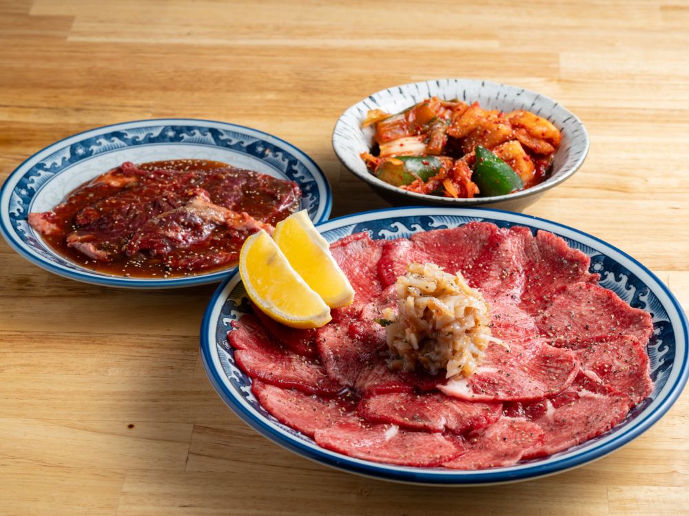 手前:「梅タン塩」1,078円(写真は2人前)、左:「タレハラミ」858円、奥:「キムチ盛り」 638円