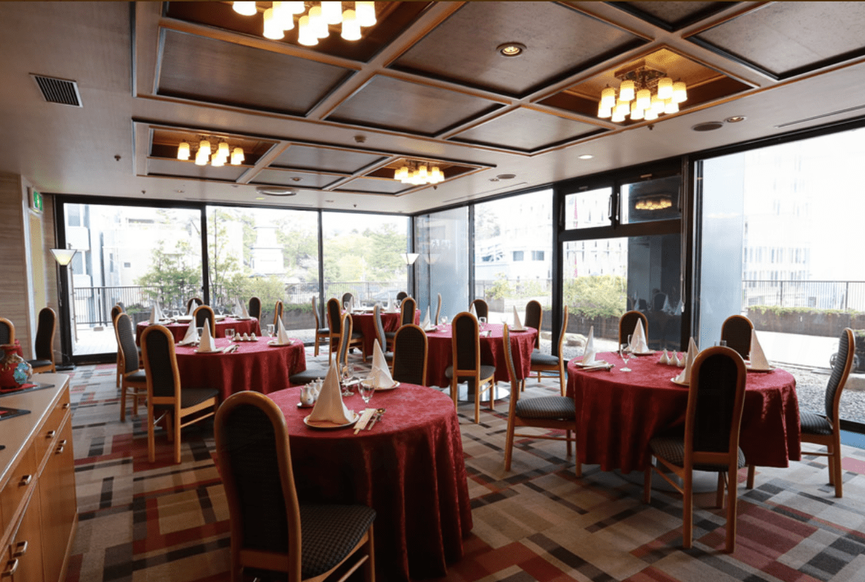 『金沢ニューグランドホテル』の3階にある落ち着きのある空間が魅力の中国料理のレストラン。エキゾチックな尾山神社の神門を背景に本格的な中国料理がいただける。料理6品、冷菜、サラダ、お好みのお食事、デザート、コーヒーがついた豪華な「犀江コースランチ」のほか、女性人気の「松花堂ランチ」やリーズナブルな価格の「五目ランチ」、さらには「蟹入り焼き飯」や「担々麺」などの単品メニューも楽しめる。お集まりごとや宴会での利用にも最適だ。