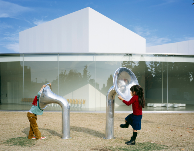 設計者は姉島和世+西沢立衛/ SANAAで、国内外の美術館をてがけており、建築界のノーベル賞といわれる、プリツカー賞の受賞経験者。館内には彼らのプロダクトが多数展示されている。