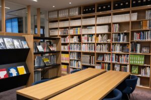 作家や作品をもっと知りたい人は、受付近くにあるアートライブラリへ。これまでの企画展のカタログや貴重な作品集、参考図書が揃っています。椅子もあるので、落ち着いたひと時を過ごせます。