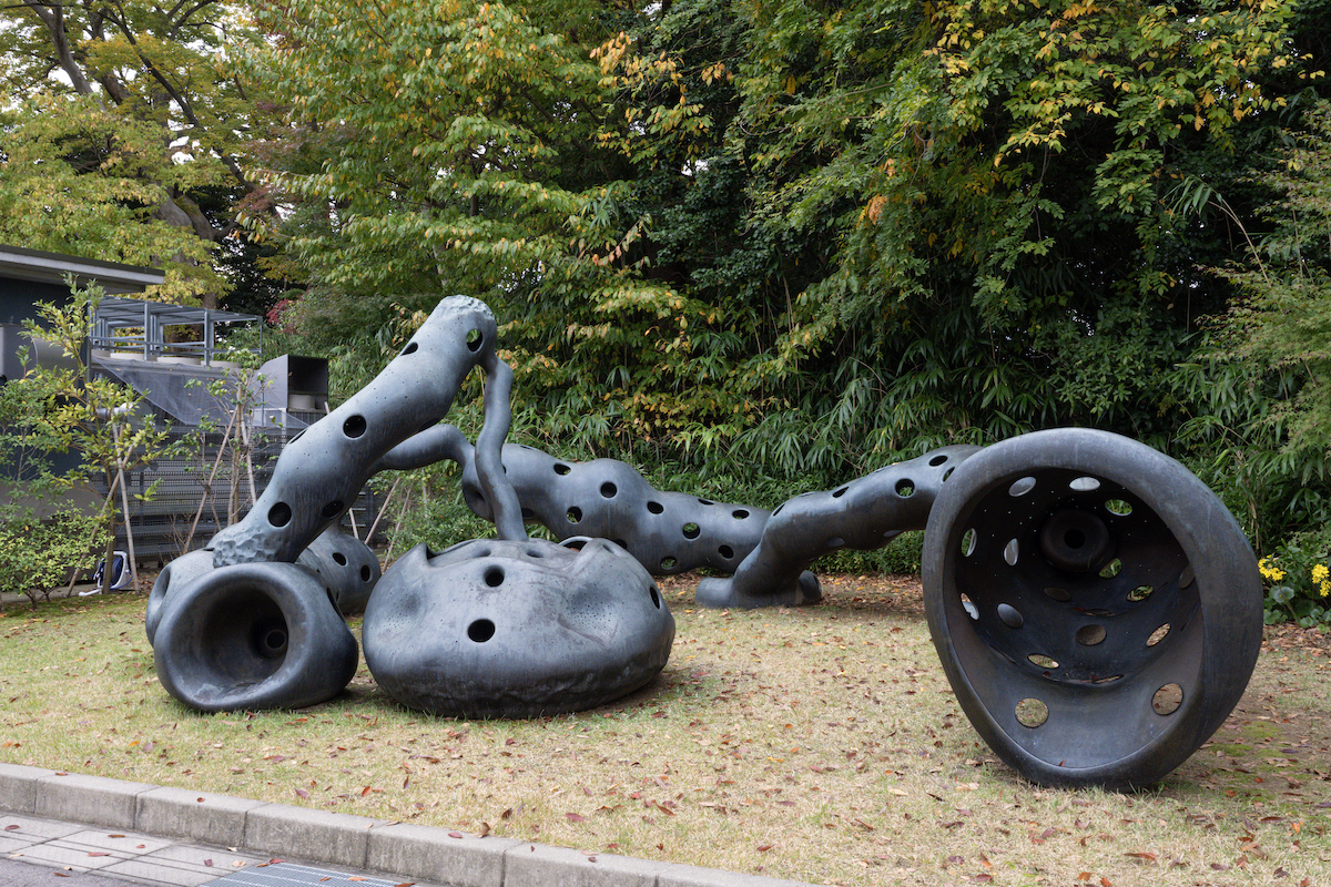 エントランスすぐに鎮座する圧巻の常設作品。なんと3mを超える巨大なやきものなんです。入館チケットがなくても見られるので気軽に見てみよう。金子潤《無題 13-09-04》2013年 写真 太田拓実