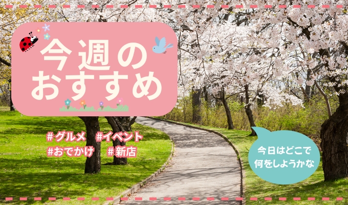 桜の開花が気になる時期になってきました♪ 桜の名所に出かけたくなりますが、一時的に寒くなる花冷えの日もあるので、まだまだ上着は手放せませんね。春のおでかけにぴったりの情報が満載の「今週のおすすめ」、要チェックです!!