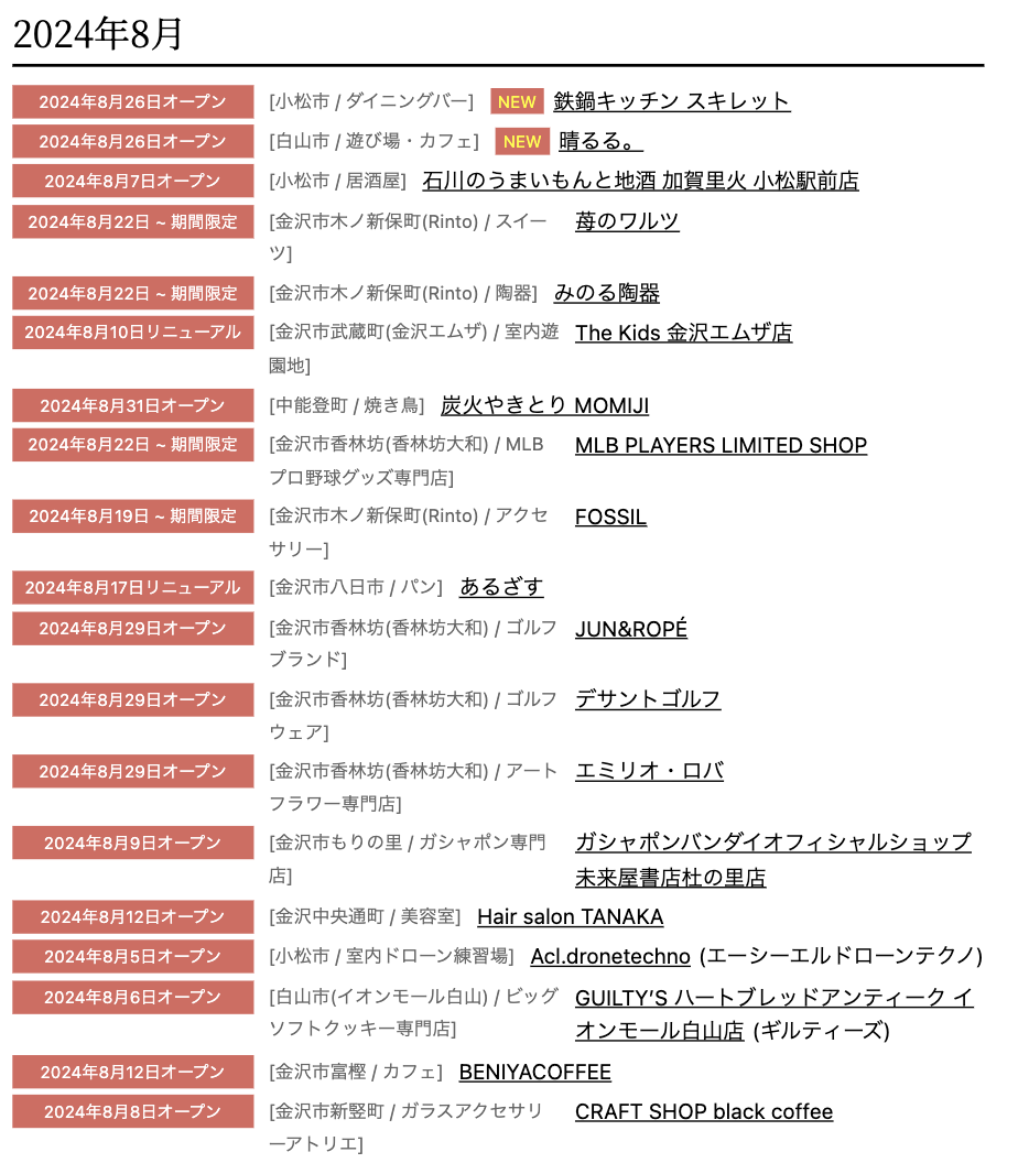 街に更なる活気をもたらす新店は、いつもわくわくしますね。この記事は、観光地としても人気の金沢を中心に、石川県に新しくオープンした素敵なお店をご紹介。お出かけや観光がてらぜひ足を運んでみてくださいね。
